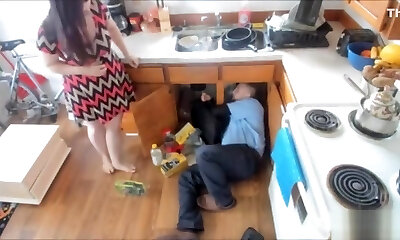 Hot mature mom Ryan Keely bangs geek 19 yo stepson in the kitchen