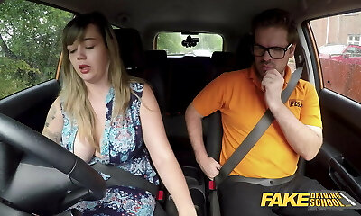 Fake Driving School Thick British boobs one last lesson