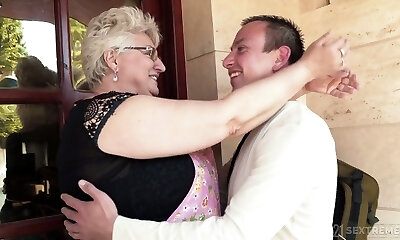 French Plus-size Granny Olga with younger guy