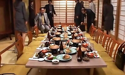 Japanese office chick gets fucked by two