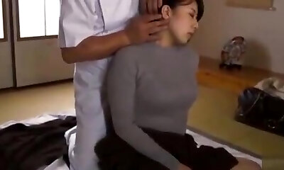 Japanese Cuckold wife get massage fuck infornt of his Husband.